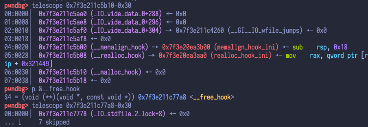 To bypass this, we need to rethink where we’re trying to write data into. The answer is __malloc_hook or __free_hook , right? Let’s take a look at that memory region.