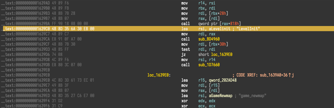 We’ll choose the string “LevelInit”. Search it in IDA.